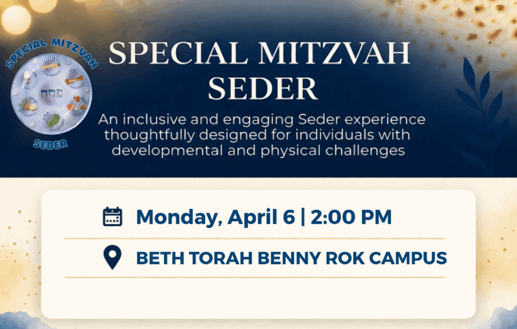 Scroll down to view the selection of engaging opportunities through Beth Torah Benny Rok Campus to make your Passover meaningful this year.